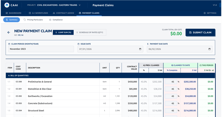 AI extracts Payment Claim Data and submits your month Progress Claim in line with SOPA