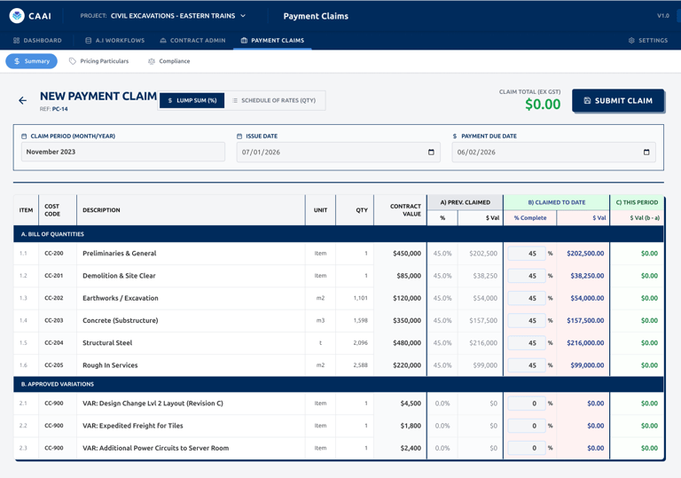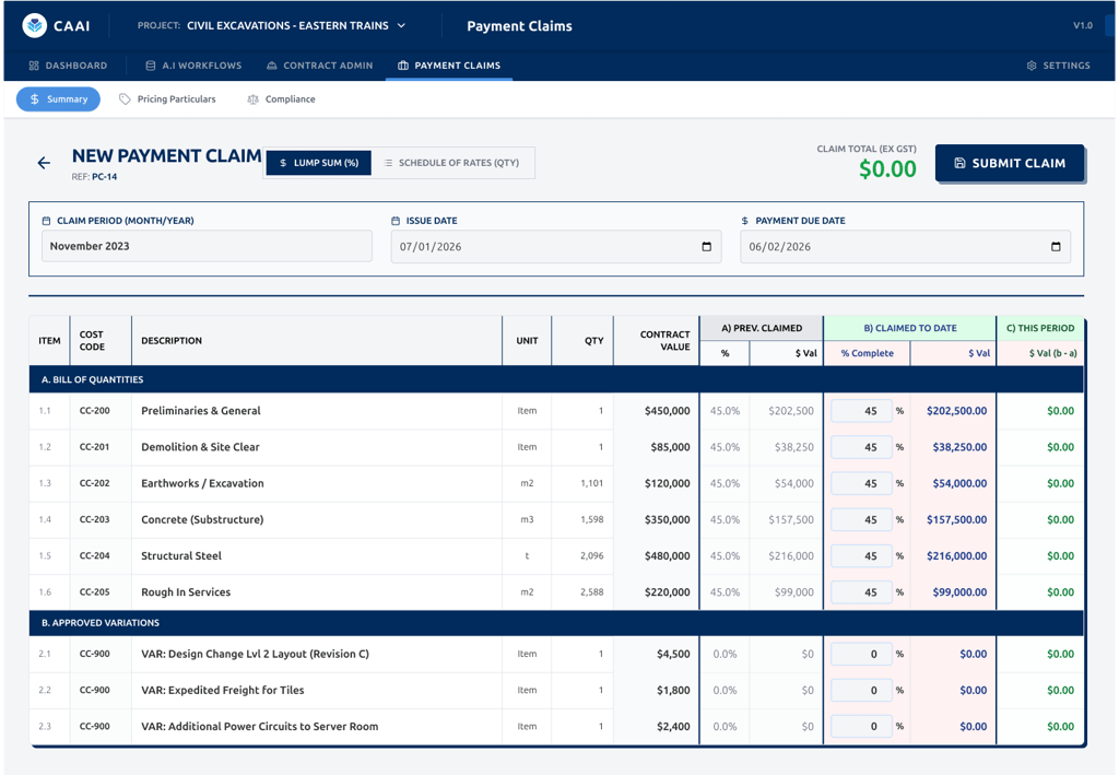 AI extracts Payment Claim Data and submits your month Progress Claim in line with SOPA
